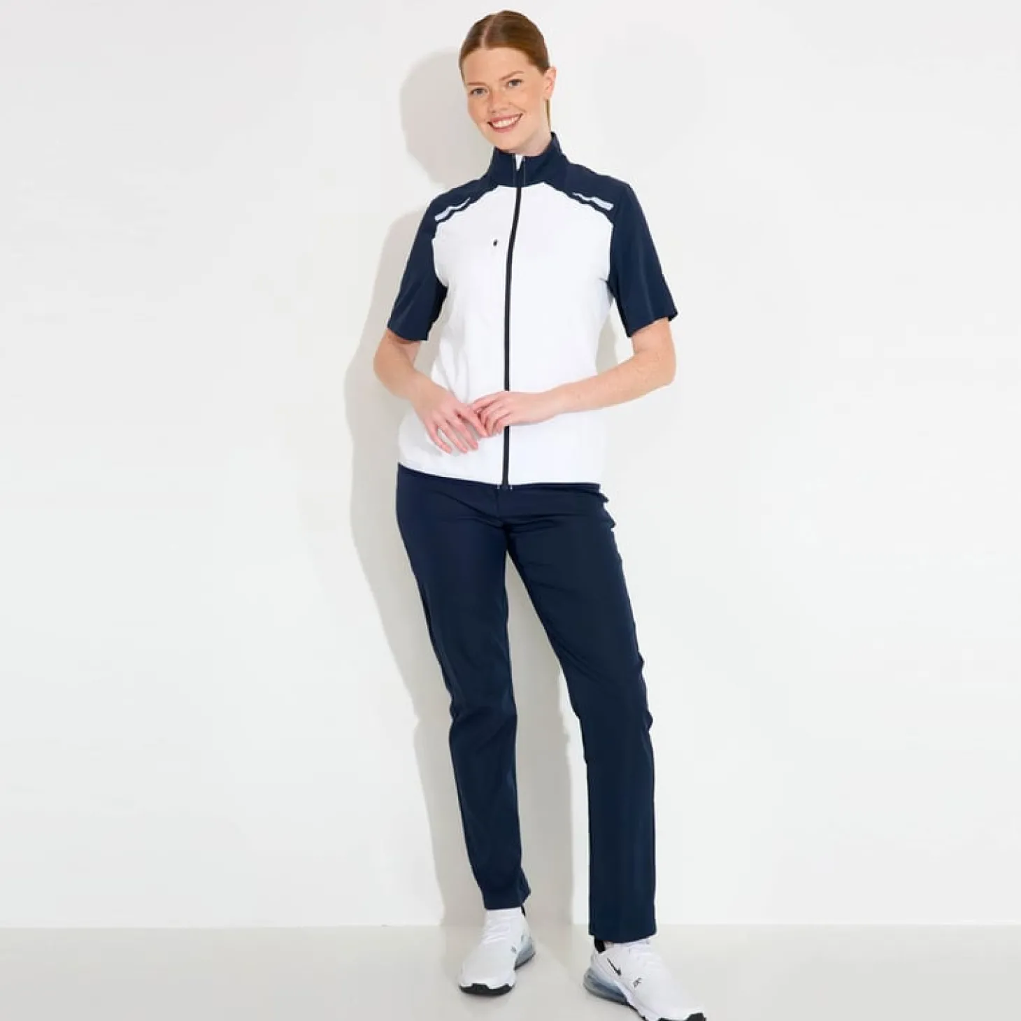 Lanark Stretch Windshirt är det perfekt funktionsplagg för dig som älskar friluftsliv – på eller utanför golfbanan. Denna vit/marinblå vindskjorta är tillverkad av ett superlätt, tunt, vindtätt tyg i återvunnen polyester, skyddar detta plagg mot nedkylande vindar utan att påverka känslan av rörelsefrihet. Tyget har ett diskret transparent tryck på fram och baksida och ärmar i kontrasterande färg vilket ger en sportig och sofistikerad känsla. Den hela dragkedjan gör plagget enkelt att ta av och på och bröstfickan med blixtlås erbjuder smidig förvaring för småsaker. Elastisk mudd i nederkant ger en bekväm och säker passform.