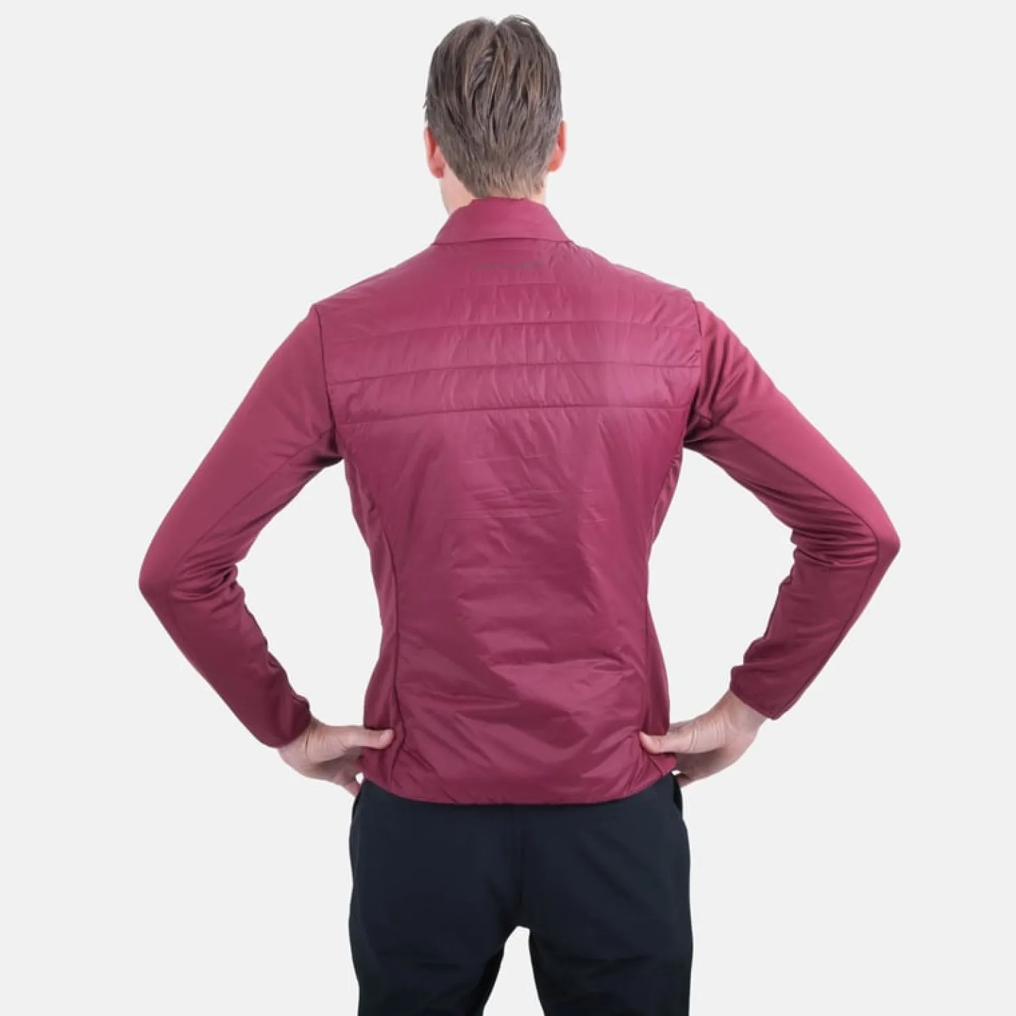 Smidig hybridjacka som är vadderad framtill och på hela ryggen. I sidorna och ärmarna är det ett värmande tyg med mycket stretch för maximal rörelsefrihet i swingen. Full dragkedja och två framfickor med dragkedja. Modellen är relativt smal i modellen, så här kan man tänka till på hur man vill använda den. Tar man sin vanliga storlek kommer den vara perfekt med en piké och kanske en underställströja under. Men vill man använda den mer som en jacka när det är riktigt kallt och vill ha en tröja under också bör man gå upp en storlek. Ton i ton logga på vänster bröst och i nacken. Vindtätt tyg på kroppen och foder är i 100% polyester. Tyg i sidor och ärmar är i 95% Polyester och 5% Elastan.